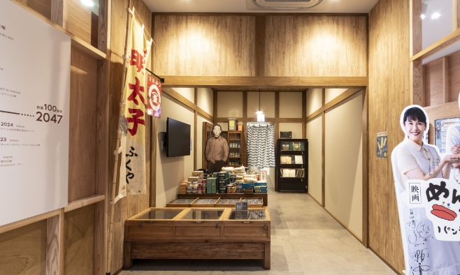 明太子が初めて販売されたふくや創業当時の店頭を再現した展示とともに、明太子やふくやの歴史を紹介するコーナーです。貴重な映像や写真、当時の様子が伺えるアイテムとともに紹介しています。
