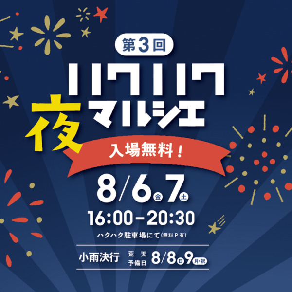 ※ハクハクマルシェ期間中の8月6日(金)・7日(土)の日中の営業は行っておりません。予めご了承ください。