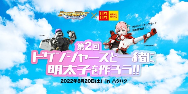 今回は、「ドゲンジャーズハイスクール」でも大人気だったふくや公式キャラクター「MAKO」も初参加。初お披露目となる「MAKO クッキングモード」と「シャベリーマン」がハクハクで待ってるよ♪