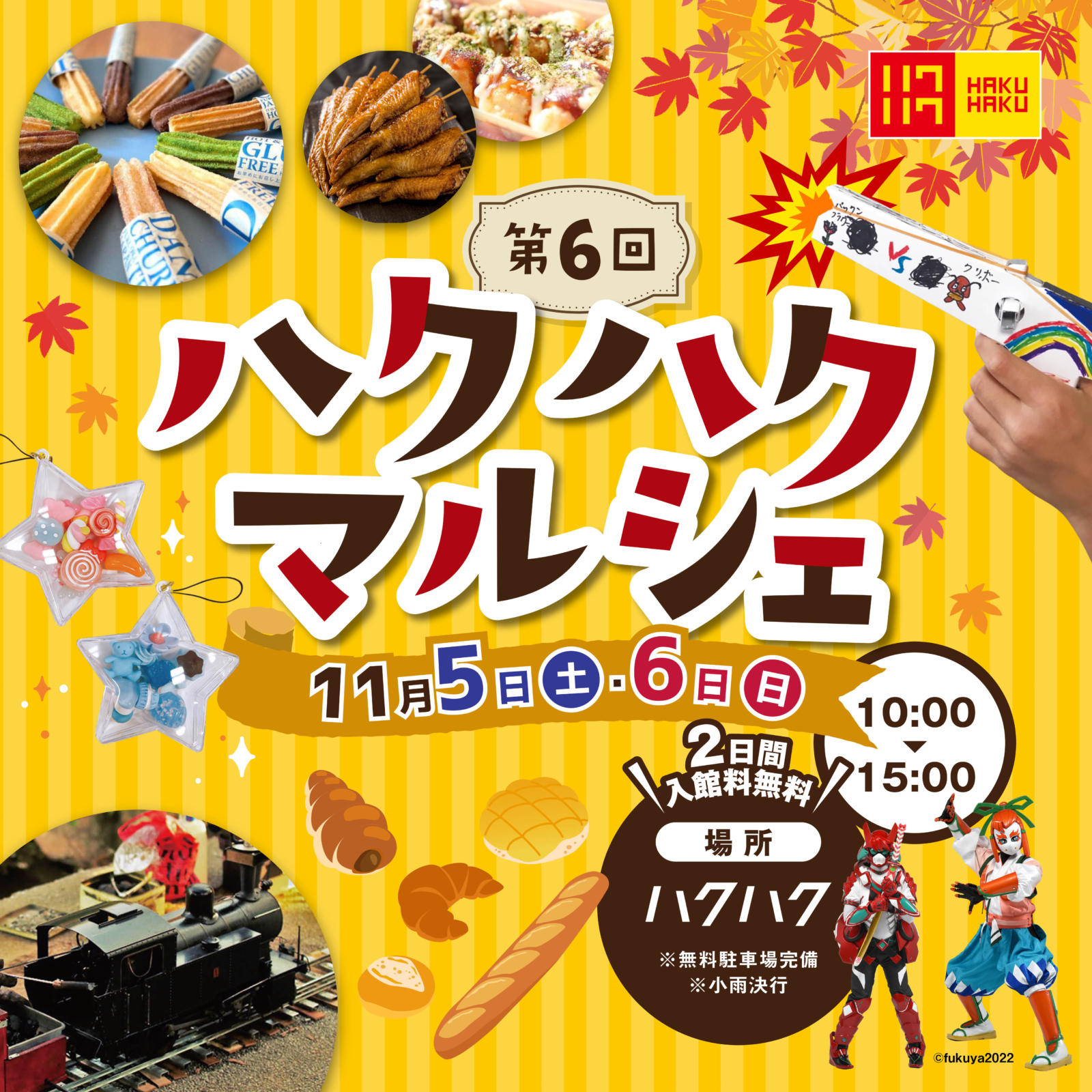 この度、第6回 ハクハクマルシェを11月5日(土)・6日(日)の2日間開催いたします!!毎回大好評のパンフェスやお得なフードロス販売も実施。お子様に楽しんでいただけるワクワクワークショップも開催します♪