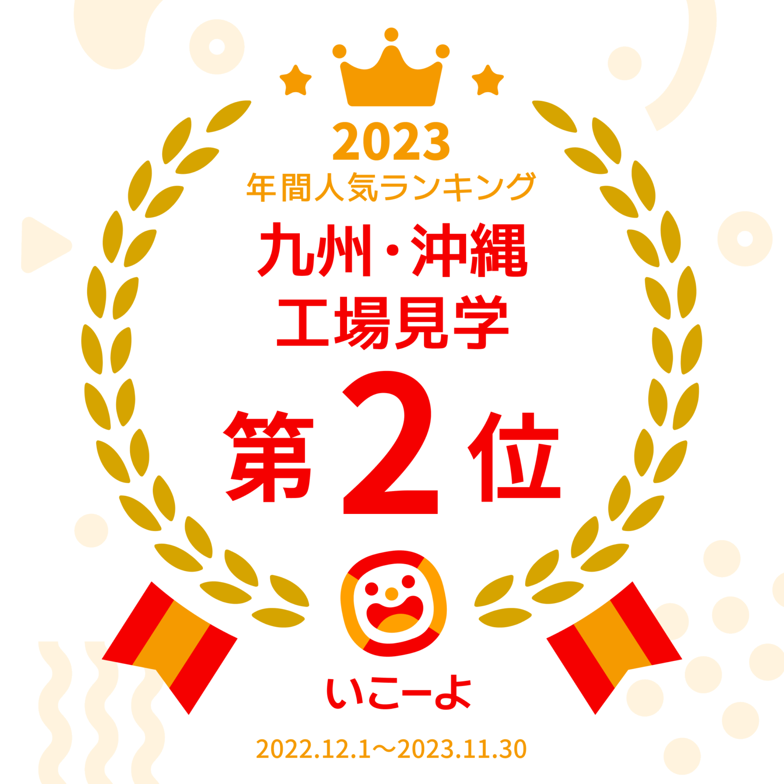 子どもとお出かけ情報サイト『いこーよ!』において、2023年度九州・沖縄の工場見学施設ランキングの2位を受賞しました 。