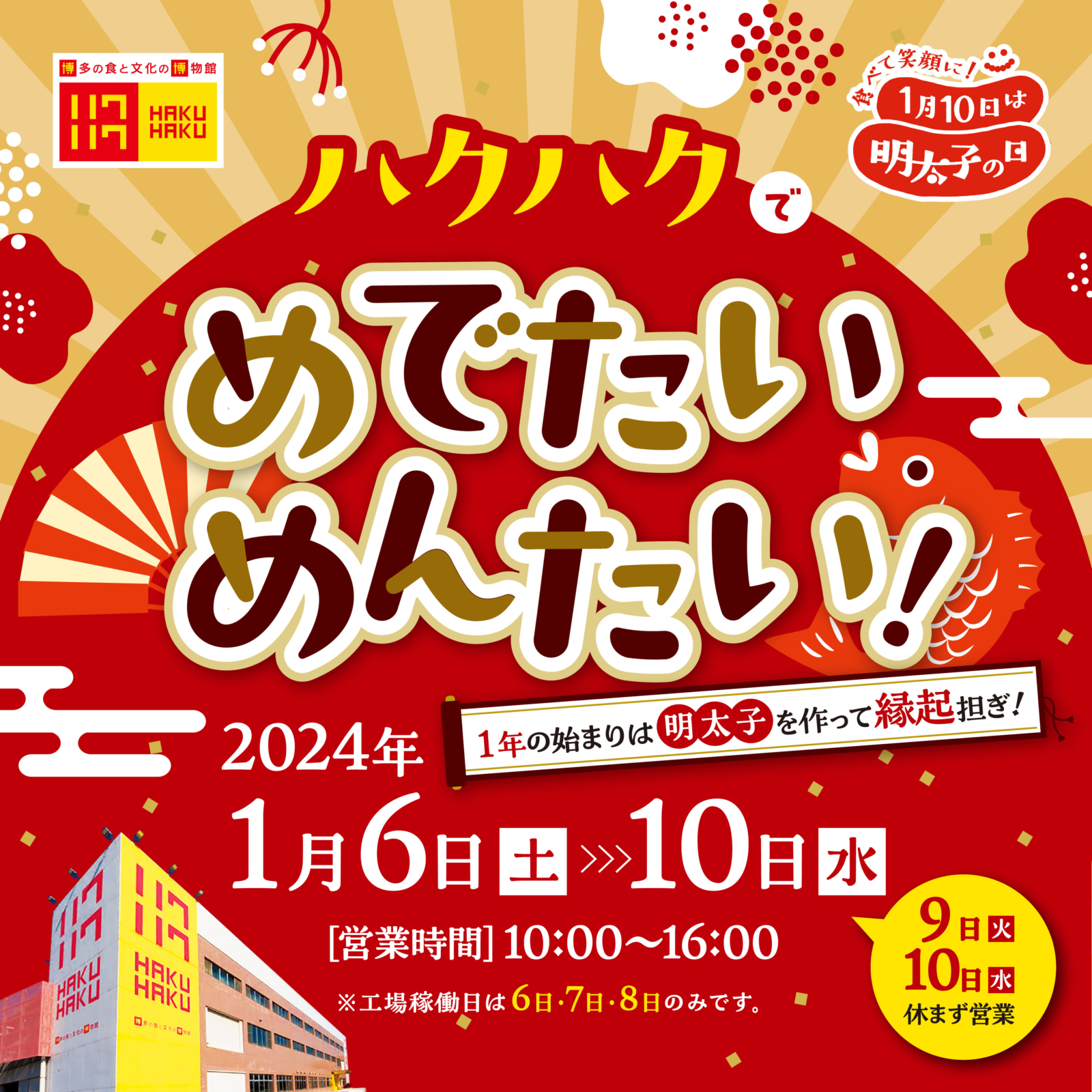 今年の明太子の日は、ぜひご家族ご友人と明太子作りにハクハクに遊びに来ませんか。