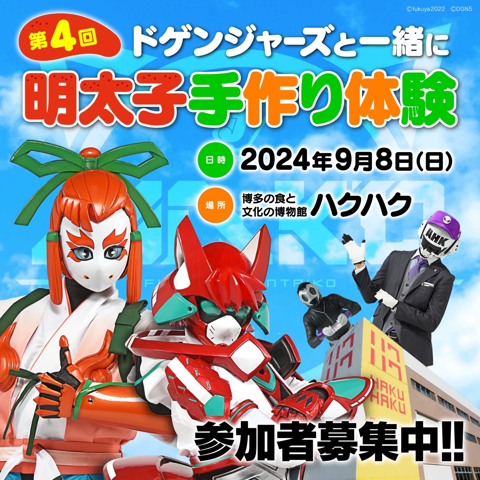 九州の”実在する”ヒーロー達が集結して作られた、福岡を舞台とした本格特撮ヒーロー作品「ドゲンジャーズ」。毎年大好評のイベントを今年も開催いたします!