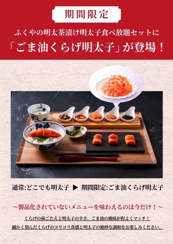 【期間限定】ふくやの明太茶漬け明太子食べ放題セットに「ごま油くらげ明太子」が登場!