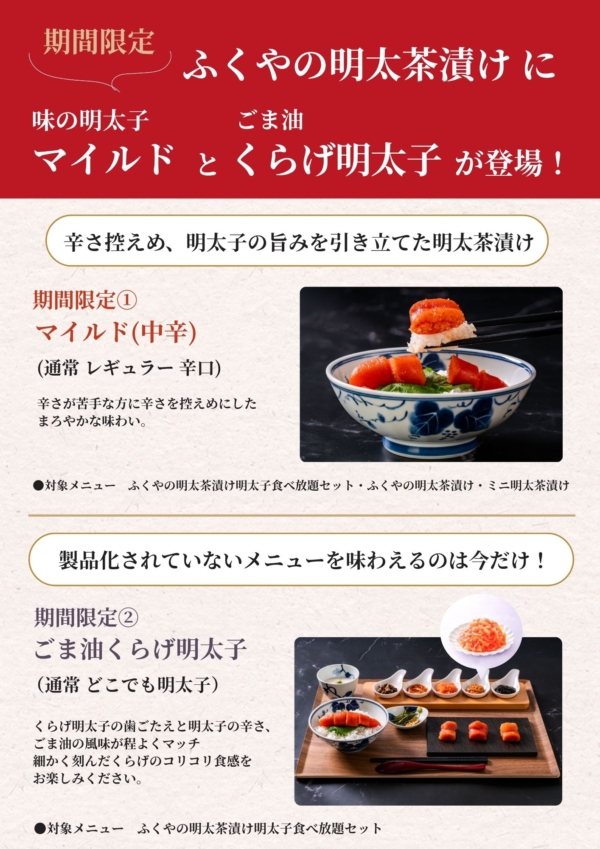 ※ふくやの明太茶漬け・ミニ明太茶漬けも“マイルド(中辛)”提供中