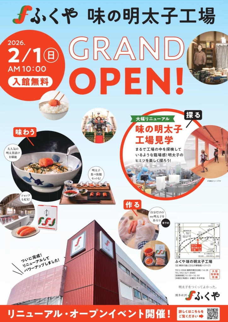 詳しくは、本ページ及びふくや味の明太子工場ハクハクの公式SNSをご確認ください。