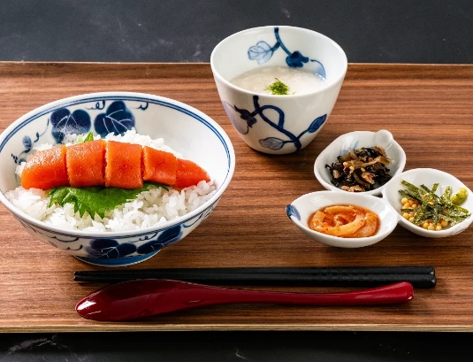 明太子をしっかり味わうことができる「ふくやの明太茶漬け」をご用意しております。ごはんはおかわり自由!「明太子食べ放題セット」なら心ゆくまで、たっぷり明太子をお楽しみいただけます。朝ごはん・ランチにもおすすめです!