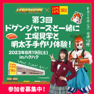 8/19(土)開催 『第3回ドゲンジャーズと一緒に工場見学と明太子手作り体験』 参加者募集!